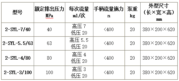 楷陽2SYL型手動雙缸系列試壓泵維修和保養: