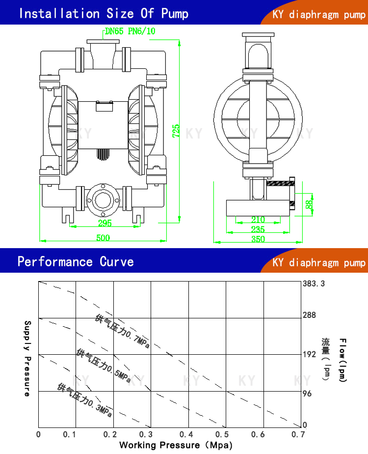 7、第四代氣動雙隔膜泵不需灌引水,吸程高達(dá)7米,揚(yáng)程達(dá)70米,出口壓力≧7bar