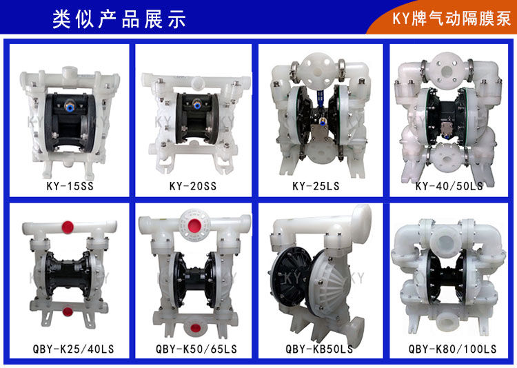14、KY型氣動隔膜泵整體構(gòu)造上更加優(yōu)化,泵腔和主管路都有明顯加強,自吸功能和流量揚程都有很大改善(最大流量/54立方/小時,最大揚程80米);被客戶成為超大流量氣動隔膜泵和壓濾機專用氣動隔膜泵。