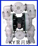 9、KY型工程塑料氣動(dòng)隔膜泵整體構(gòu)造上更加優(yōu)化,泵腔和主管路都有明顯加強(qiáng),自吸功能和流量揚(yáng)程都有很大改善(最大流量/54立方/小時(shí),最大揚(yáng)程80米);被客戶成為超大流量氣動(dòng)隔膜泵和壓濾機(jī)專用氣動(dòng)隔膜泵。
