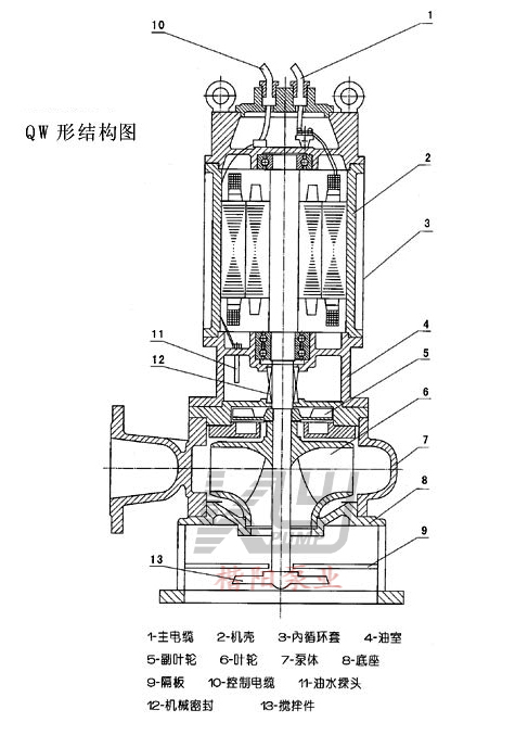 七、QW(WQ)型潛水式可移動(dòng)無堵塞排污泵結(jié)構(gòu)圖: